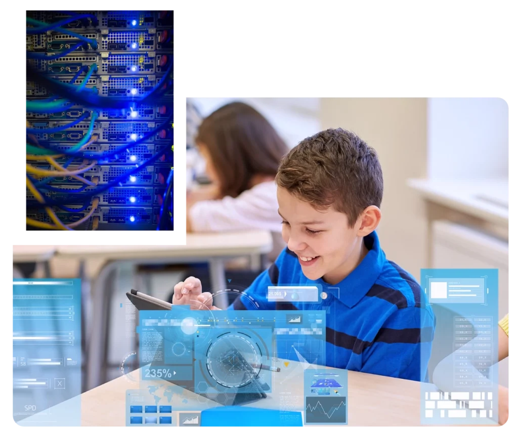 Redes que funcionan, sin excusas. Diseñamos, implementamos y mantenemos infraestructuras de red con cobertura total en toda tu institución, garantizando una conexión estable y continua para que el aprendizaje nunca se detenga.